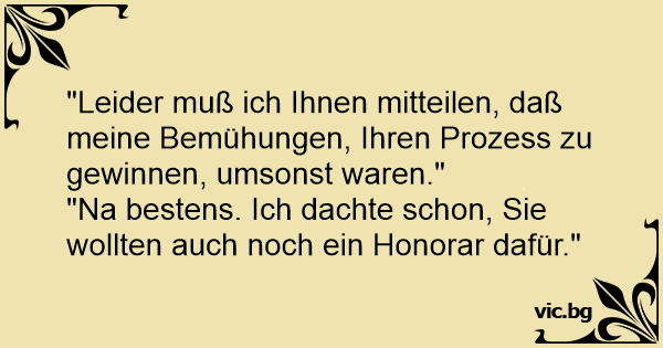 "Leider muß ich Ihnen mitteilen, daß meine Bemühungen, Ihren Prozess zu gewinnen, umsonst waren."