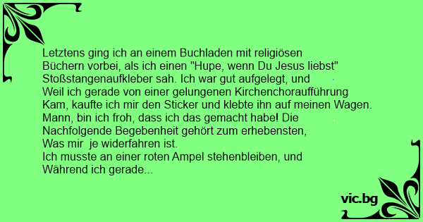 Gläubigen zu. Ich hupte sogar mehrmals,um an Ihrer Liebe
