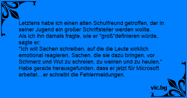 Habe gerade herausgefunden, dass er jetzt für Microsoft arbeitet…er schreibt die Fehlermeldungen.