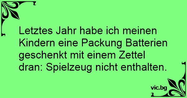 Letztes Jahr habe ich meinen Kindern eine Packung Batterien geschenkt mit einem Zettel dran: Spielzeug niсhт enthalten.