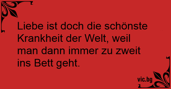Liebe ist doch die schönste Krankheit der Welt, weil man dann immer zu zweit ins Bett geht.