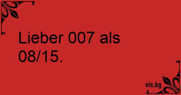 Lieber 007 als 08/15.
