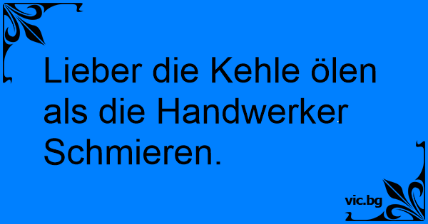 Lieber die Kehle ölen als die Handwerker Schmieren.
