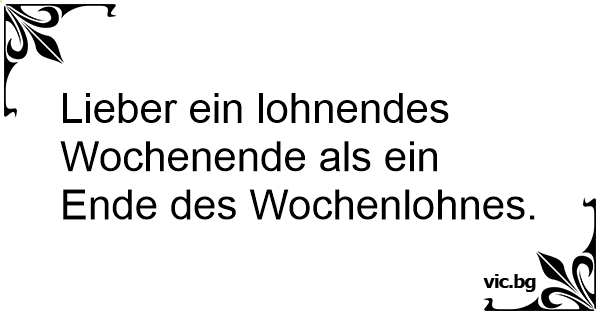 Lieber ein lohnendes Wochenende als ein Ende des Wochenlohnes.