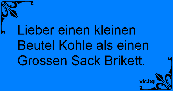 Lieber einen kleinen Beutel Kohle als einen Grossen Sack Brikett.