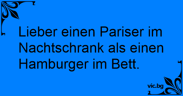 Lieber einen Pariser im Nachtschrank als einen Hamburger im Bett.
