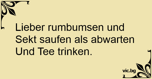 Lieber rumbumsen und Sekt saufen als abwarten Und Tee trinken.