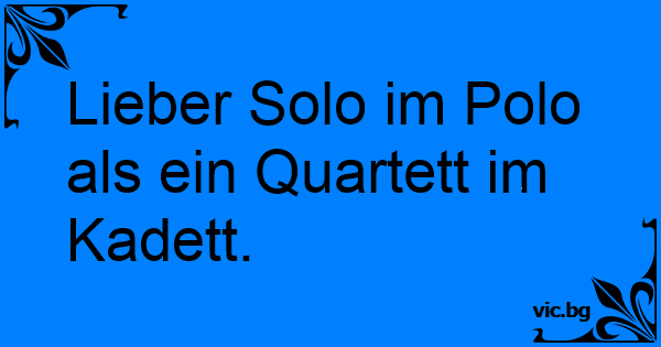 Lieber Solo im Polo als ein Quartett im Kadett.