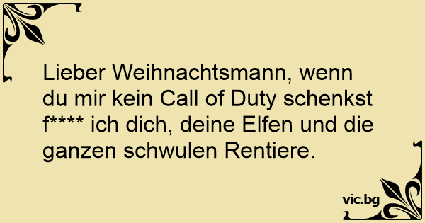 Lieber Weihnachtsmann, wenn du mir kein Call of Duty schenkst f**** ich dich, deine Elfen und die ganzen schwulen Rentiere.
