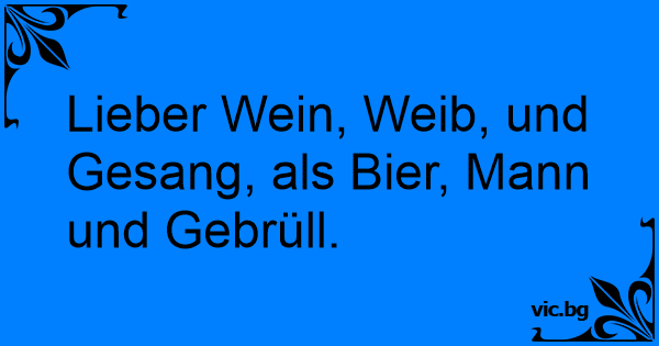 Lieber Wein, Weib, und Gesang, als Bier, Mann und Gebrüll.