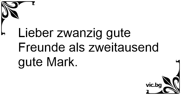 Lieber zwanzig gute Freunde als zweitausend gute Mark.