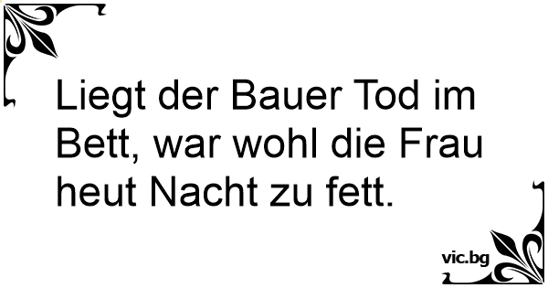 Liegt der Bauer Tod im Bett, war wohl die Frau heut Nacht zu fett.