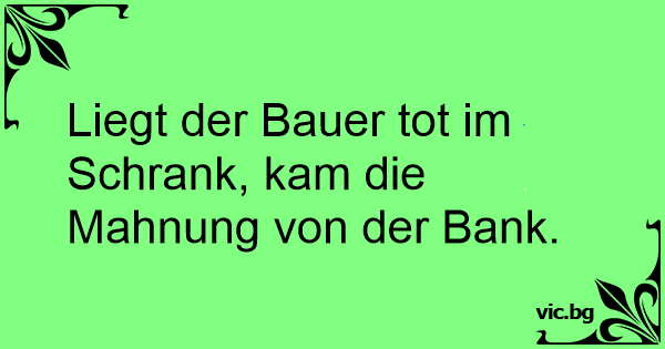 Liegt der Bauer tot im Schrank, kam die Mahnung von der Bank.