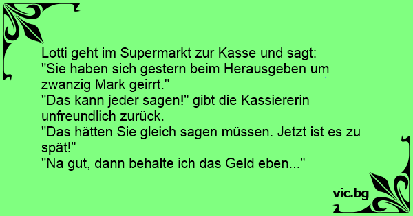 "Das kann jeder sagen!" gibt die Kassiererin unfreundlich zurück.