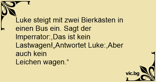 Luke steigt mit zwei Bierkästen in einen Bus ein. Sagt der lmperrator:,Das ist kein Lastwagen!„Antwortet Luke:,Aber auch kein