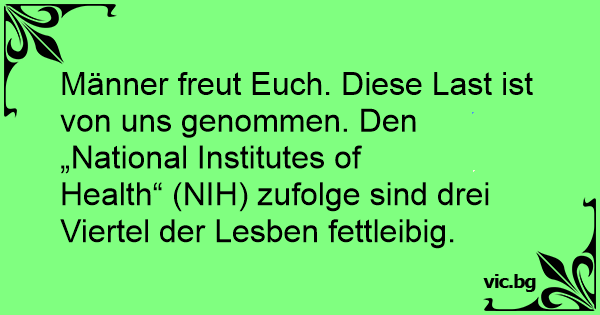 Männer freut Euch. Diese Last ist von uns genommen. Den „National Institutes of Health“ (NIH) zufolge sind drei Viertel der Lesben fettleibig.