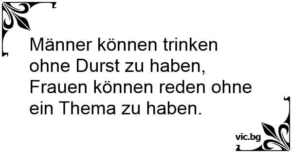 Männer können trinken ohne Durst zu haben, Frauen können reden ohne ein Thema zu haben.