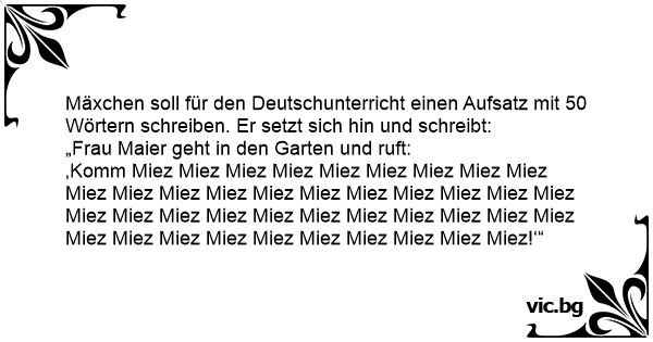 Mäxchen soll für den Deutschunterricht einen Aufsatz mit 50 Wörtern schreiben. Er setzt sich hin und schreibt: