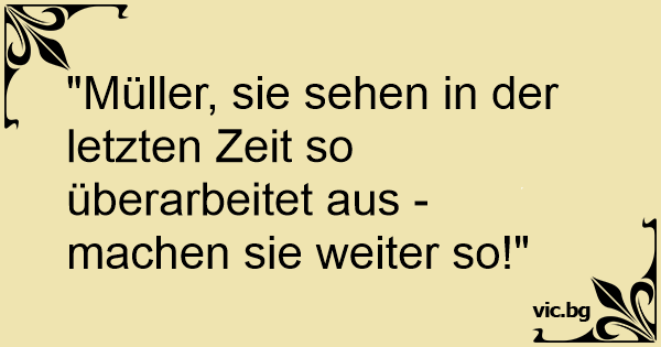 "Müller, sie sehen in der letzten Zeit so überarbeitet aus - machen sie weiter so!"