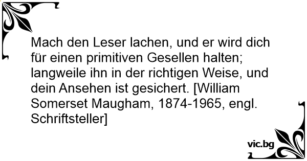 Mach den Leser lachen, und er wird dich für einen primitiven Gesellen halten; langweile ihn in der richtigen Weise, und dein Ansehen ist gesichert. [William Somerset Maugham, 1874-1965, engl. Schriftsteller]
