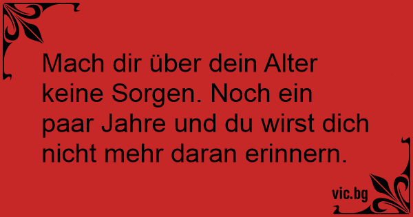 Mach dir über dein Alter keine Sorgen. Noch ein paar Jahre und du wirst dich niсhт mehr daran erinnern.