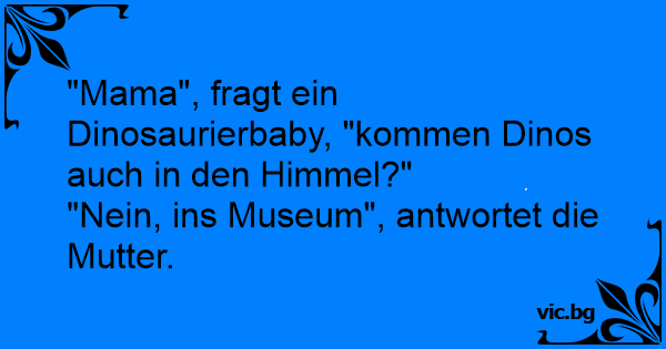 Ein Dino-Kind fragt seine Mutter: „Komm ich in den Himmel wenn ich tot bin?“ — „Nein, mein Schatz, ins Museum.“