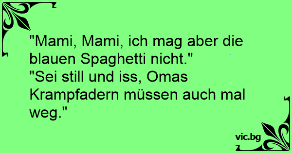 "Sei still und iss, Omas Krampfadern müssen auch mal weg."