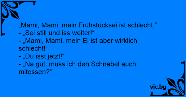 - „Mami, Mami, mein Ei ist aber wirklich schlecht!“