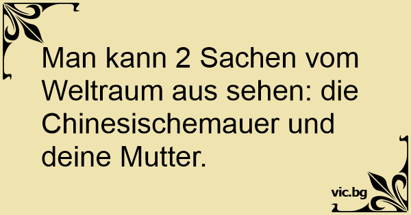 Man kann 2 Sachen vom Weltraum aus sehen: die Chinesischemauer und deine Mutter.