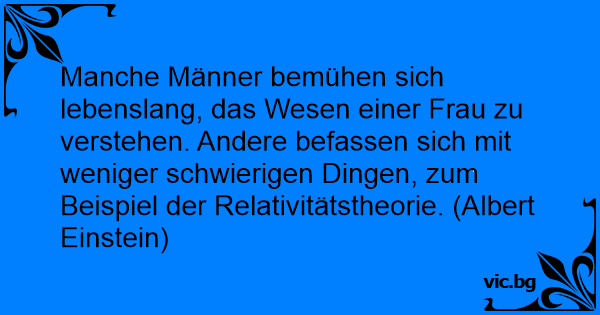 Manche Männer bemühen sich lebenslang, das Wesen einer Frau zu verstehen. Andere befassen sich mit weniger schwierigen Dingen, zum Beispiel der Relativitätstheorie. (Albert Einstein)