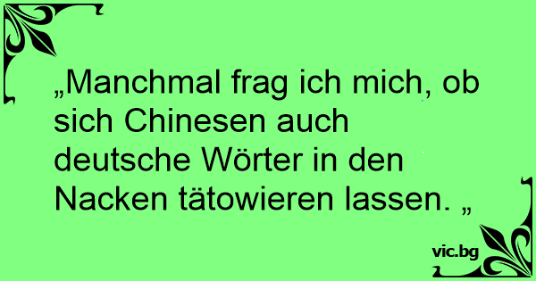 „Manchmal frag ich mich, ob sich Chinesen auch deutsche Wörter in den Nacken tätowieren lassen. „
