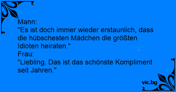 "Es ist doch immer wieder erstaunlich, dass die hübschesten Mädchen die größten Idioten heiraten."