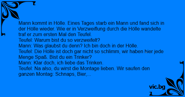 Mann: Was glaubst du denn? Ich bin doch in der Hölle.