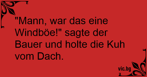 "Mann, war das eine Windböe!" sagte der Bauer und holte die Kuh vom Dach.