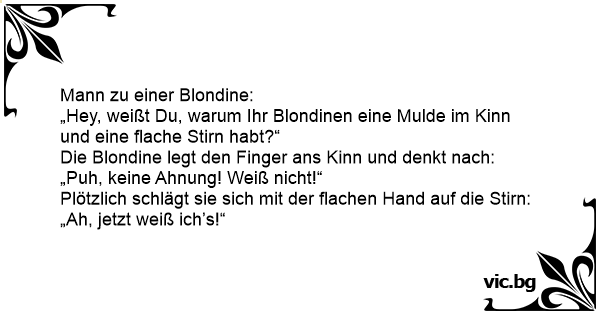 „Hey, weißt Du, warum Ihr Blondinen eine Mulde im Kinn und eine flache Stirn habt?“