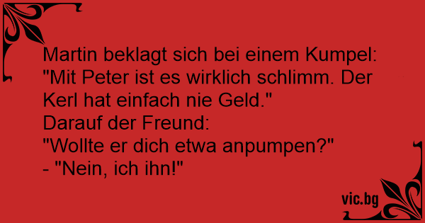 "Mit Peter ist es wirklich schlimm. Der Kerl hat einfach nie Geld."