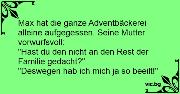 Max hat die ganze Adventbäckerei alleine aufgegessen. Seine Mutter vorwurfsvoll: