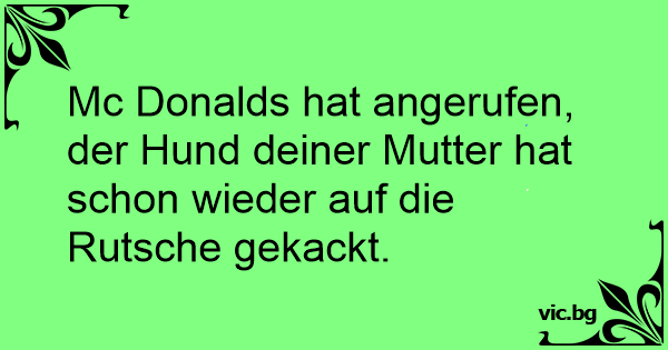 Mc Donalds hat angerufen, der Hund deiner Mutter hat schon wieder auf die Rutsche gekackt.