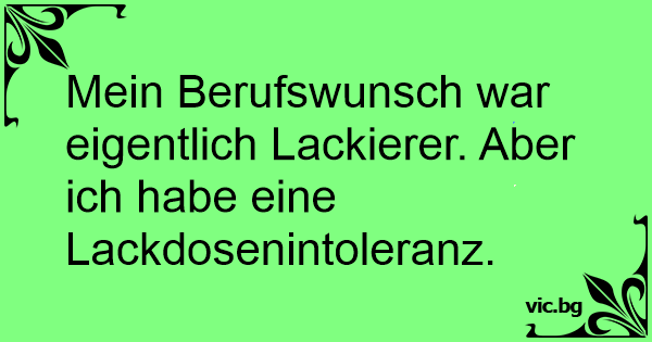 Mein Berufswunsch war eigentlich Lackierer. Aber ich habe eine Lackdosenintoleranz.