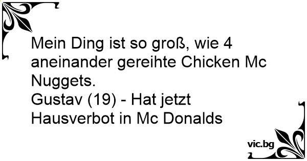 Mein Ding ist so groß, wie 4 aneinander gereihte Chicken Mc Nuggets.
