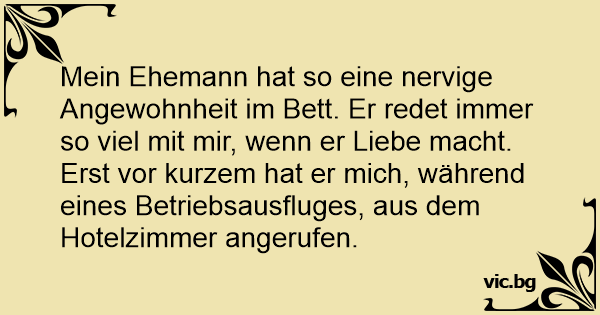Mein Ehemann hat so eine nervige Angewohnheit im Bett. Er redet immer so viel mit mir, wenn er Liebe macht.