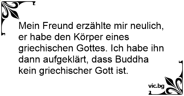 Mein Freund erzählte mir neulich, er habe den Körper eines griechischen Gottes. Ich habe ihn dann aufgeklärt, dass Buddha kein griechischer Gott ist.