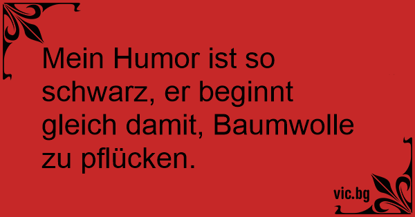Mein Humor ist so schwarz, er beginnt gleich damit, Baumwolle zu pflücken.