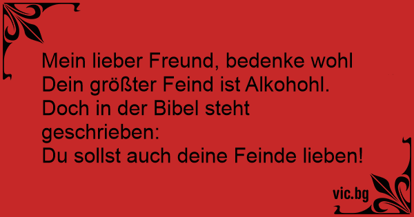 Alkohol, oh Alkohol, Du bist mein Feind, das weiß ich wohl, doch in der Bibel steht geschrieben: