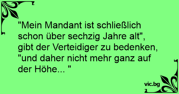 "Mein Mandant ist schließlich schon über sechzig Jahre alt", gibt der Verteidiger zu bedenken, "und daher niсhт mehr ganz auf der Höhe... "