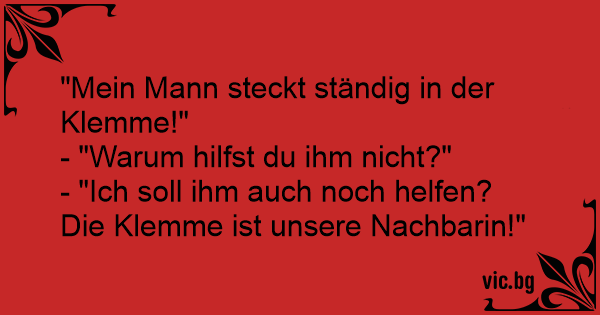- "Ich soll ihm auch noch helfen? Die Klemme ist unsere Nachbarin!"