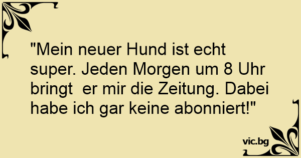 "Mein neuer Hund ist echt super. Jeden Morgen um 8 Uhr bringt er mir die Zeitung. Dabei habe ich gar keine abonniert!"