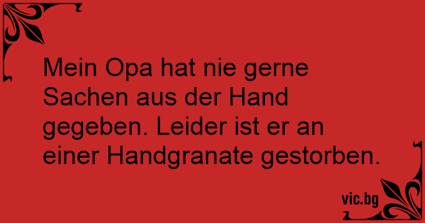 Mein Opa hat nie gerne Sachen aus der Hand gegeben. Leider ist er an einer Handgranate gestorben.