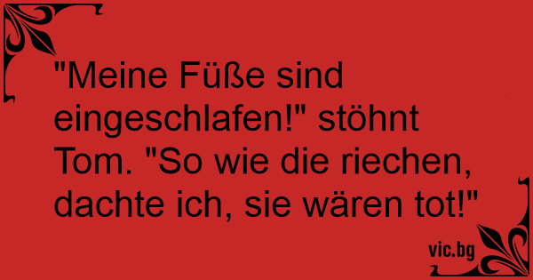 "Meine Füße sind eingeschlafen!" stöhnt Tom. "So wie die riechen, dachte ich, sie wären tot!"
