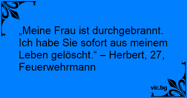 „Meine Frau ist durchgebrannt. Ich habe Sie sofort aus meinem Leben gelöscht.“ – Herbert, 27, Feuerwehrmann